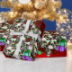 Os crânios agradàvel decorados são arranjados na forma de uma árvore de Natal assim que você pode comemorar os feriados com os "normals."