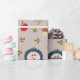 Um design de ouriço fofo com frutas, folhas e nozes.