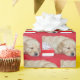 Um filhote de ouro bonito com presente de Natal em vermelho.