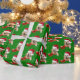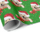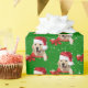 Um cão bonito e recuperador de ouros em flocos de neve com arco vermelho e fita. A cor de fundo verde pode ser alterada.