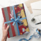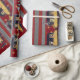 Papel De Presente Ouro do trem de Natal Strips Cinzas da Borgonha