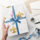 Ouro elegante e à moda e papel de envolvimento branco da flor de lis. Caracteriza uma flor de lis branca da cor e do ouro do fundo por todo o lado no teste padrão com ouro contínuo a flor de lis colorida dispersada. Não gostam do branco? Mude a cor do fundo a o que quer que você deseja! Encontre produtos de coordenação em nossa loja de Zazzle!
