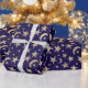 Papel De Presente Ouro elegante Stars Lua Blue Marinho Champaigne