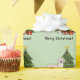 A ilustração original do desenho animado de Destei de um cão da raça Retriever, Ouro de cor de creme em inglês. O cachorro está parado por uma árvore festiva de Natal decorada com ornamentos vermelhos e amarelos, uma pérola branca e uma estrela amarela que é colocada no topo da árvore. Há também dois presentes embrulhados pela árvore e há uma área de texto personalizável que agora diz: "Feliz Natal!". A cor de fundo é verde-claro.