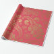 Papel De Presente Ouro Luxury Paisley sobre fundo rosa tropical