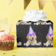 Um ouro bonito com chapéu de festa de aniversário e um confete colorido sobre fundo preto. A cor de fundo pode ser editada.
