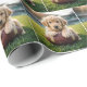 Um fofo recuperador de ouros que se posou num futebol num estádio desportivo.