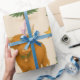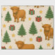 Ouro Star Highland Noel Highland vacas vestindo colarinhos festivos vagando entre árvores verdes, estrelas ouros e presentes de férias em um pano de fundo quente de creme. Este padrão irradia uma alegria de Natal confortável com um charme rústico do campo, perfeito para embrulhar presentes com o calor tradicional de férias.