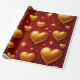 Corações brilhantes do ouro brilham sobre um fundo vermelho rico com estrelas cintilantes. Elegante, festivo e romântico, esta trabalho de arte brilha com calor e charme. Criado com a ajuda da IA de acordo com o prompt exclusivo da DigitalGemArt.