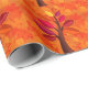 Belamente embrulho, especialmente para dar presentes no outono, como aniversários. Ouro amarelo e laranja folhas aglomeradas e dispersas ao fundo que se emparelham perfeitamente num design moderno de uma árvore simples ilustrada com folhas rosa, púrpura e laranja.
