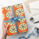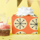 Este papel de embrulho tem uma design moderna do século médio de ovais de creme e estrelas pretas em um campo de laranja.