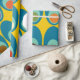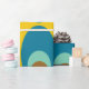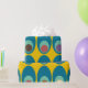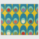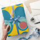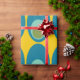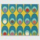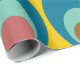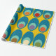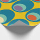 Este papel de embrulho tem uma design moderna do século médio de ovais azuis com ovais e círculos dentro em cores retrorativas de azul, roxo, verde, laranja, vermelha, rosa, marrom e branca num campo de ouro.