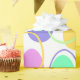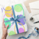 Este papel de embrulho tem uma design Páscoa de ovos em roxo, amarelo, verde, azul e rosa espalhados com seus contornos.