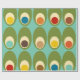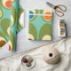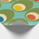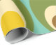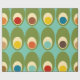 Este papel de embrulho tem uma design moderna do século médio de ovais verdes com ovais e círculos neles fazeres que eles se parecem com ovos em cores retrorativas de vermelho, amarelo, azul, verde, marrom e laranja em um campo de azul claro.