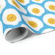 Um padrão repetido de ovos fritos felizes, ensolarados em um fundo azul.