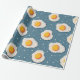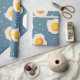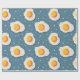 Um padrão de ovos fritos frescos em um fundo azul-céu. Bom dia café da manhã :)