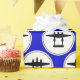 Silhueta clássica de P-38 Relâmpago em um círculo branco, com fundo azul para celebrar Chanucá. Papel perfeito de embrulho de presente para o seu fã P-38 favorito. Muitos tamanhos para escolher.