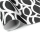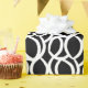 Um padrão abstrato moderno com linhas brancas curvas cruzando-se e unindo-se em fundo preto.
