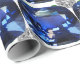 Um design de pedra de safira azul cortada na almofada, arranjado em um padrão de repetição ousado. A profunda matiz azul real da safira simboliza sabedoria, verdade e elegância. Como pedra de nascença de setembro, a safira acrescenta um toque eterno e luxuoso a qualquer criação artística.