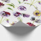 O bonito padrão floral apresenta as folhas e as pincas de cor amarela e púrpura em fundo branco.