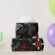 Padrão botânico elegante em fundo preto com folhas brancas, bagas vermelhas e desenhos florais intrincados com acentos dourados, criando uma sensação festiva e decorativa.