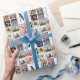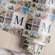 Crie o seu próprio papel personalizado de revestimento metálico de 12 imagens com imagens e monogramas personalizados num fundo na moda elegante de mármore branco.