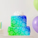 Padrão branco de flocos de neve em um fundo gradiente de cor arco-íris diagonal.