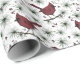Este elegante papel de embrulho de inverno apresenta um padrão de aves cardeal vermelhas desenhadas à mão tocadas em galhos de pínus contra fundo branco.