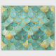Papel De Presente Padrão de Aqua Sereia de Escala de Água Dourada