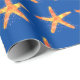 Padrão de pinturas de estrelas-do-mar em fundo amarelo texturizado. Rolos de papel de embrulho personalizados. Ideia de presente para adultos e crianças.