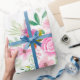 Papel De Presente Padrão de aquarela floral verde-rosa moderno