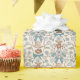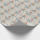 Papel de bobina e papel de embrulho rústico com ilustração desenhada à mão de arcos e flores em azul.