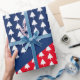 Papel De Presente Padrão de Árvore de Natal Branco Azul Indigo