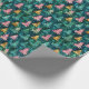 Papel De Presente Padrão de Árvore Florestal Verde, Rosa e Dourada