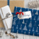 Lindas árvores de Natal estilizadas em vários estilos e tamanhos brilham com luz neste design de papel embrulhado com uma paleta de cor azul e branca prussiana. Procure ID844 para ver outros produtos com este design.