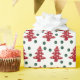 Árvores de Natal vermelhas semeadas com bolhas de botão e fundo verde de botão escuro em plástico de presente divertido.