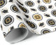 Bonés de formatura pretos se combinam com círculos, quadrados e espetos para criar um padrão elegante perfeito para presentes para seu aluno favorito. O padrão está disponível em preto/ouro e preto/prata (cinzas) numa variedade de produtos. Ideal para embrulhar presentes para o seu formando.