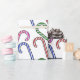 Um padrão de canas doces vermelhas, verdes, cor-de-rosa e azuis, com um padrão de brilho digital.