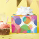 Papel de enrolamento colorido com um padrão uniforme de círculo sobreposto. Joyfull e vibrante motivo para fazer a pop de presente!