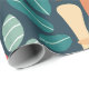 Um padrão caprichoso mostrando uma variedade de cogumelos coloridos e elementos folhosos sobre fundo negro, evocando o charme mágico de uma floresta encantada.