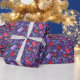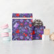 Papel tecidular com um padrão encantador, material de costura - tesoura, botões, colheres de fio, agulhas. Esse design, elaborado a partir de colagem de papel feita à mão, faz um presente de excelente para artesãos e esgotos. Cor azul escura e vermelho escarlate. © Clipso-Callipso/Julia Khoroshikh www.juliakhoroshikh.art #giftwrapping #wrappingpaper #teclimaper #homehobbies #haberdashery