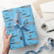 Legal plástico azul-presente impresso com um padrão completo de panelas, talheres e pratos de cozinha. Perfeito para embrulhar presentes para cozinheiros, cozinheiros e alimentos