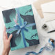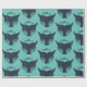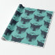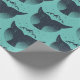 Enrolamento de presente com um padrão gráfico em estilo de crachá apresenta silhueta de cauda de baleia com contorno de montanha sobre fundo aqua claro