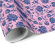 Papel De Presente Padrão de Damascos Florais Rosa e Azul