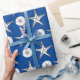 Estirpe de areia e padrão de dólar em fundo azul médio. Folha personalizada de papel de embrulho. Dar uma ideia para adultos e crianças que amam o mar.