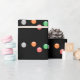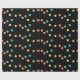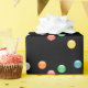 Esferas coloridas, esferas de papel de embrulho para todos os presentes. Cinza azul, amarela e esferas verdes pequenas em design de padrão de fundo preto.