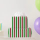 Esta design de papel de embrulho apresenta listras inspiradas no Natal, verdes, brancas e vermelhas. Esfregar papel como este pode ser divertido de usar ao preparar presentes ou presentes sendo dados em comemoração de um aniversário, casamento, aniversário ou qualquer outro evento.