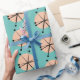 O padrão retrorreflector divertido apresenta estrelas atômicas do século médio preto gráficas em disco cor-de-rosa com fundo azul claro