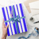 Papel De Presente Padrão de Faixa Vertical Branco Azul