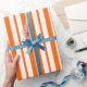 Papel De Presente Padrão de Faixa Vertical Branco Laranja